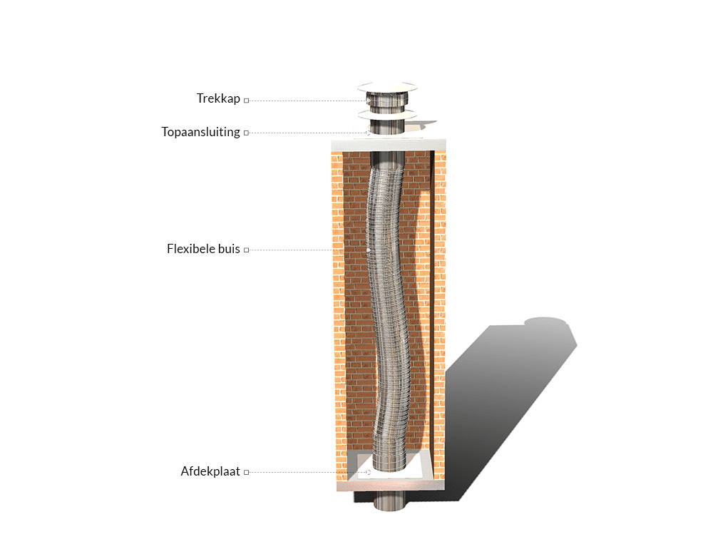 Al onze flexibele rookkanalen zijn getest tot 1000 °C. In de praktijk worden zulke extreme temperaturen vrijwel nooit bereikt, waardoor je altijd verzekerd bent van een veilige en betrouwbare rookgasafvoer.