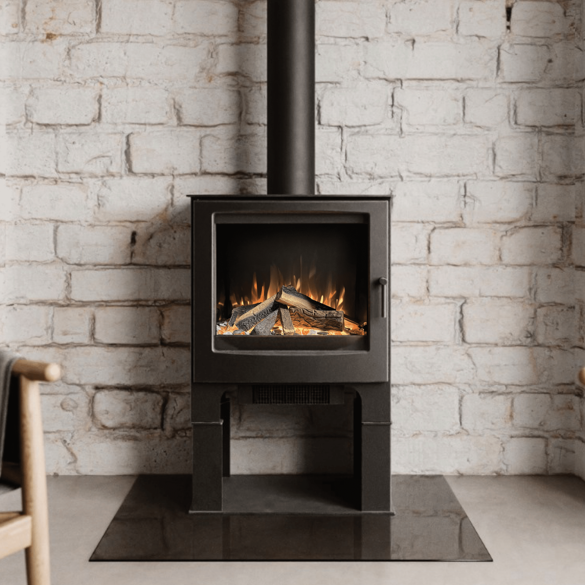 Een van de grootste voordelen van een elektrische haard zoals de Ilektro Woodland is de eenvoud van installatie. Omdat het toestel volledig elektrisch is, heb je geen rookkanaal, ventilatie of gasleiding nodig. Je hoeft de haard alleen maar op een stopcontact aan te sluiten, waardoor hij in bijna elke ruimte geplaatst kan worden. Dit maakt hem vooral aantrekkelijk voor appartementen, renovaties of ruimtes waar een traditionele haard technisch niet haalbaar is.
