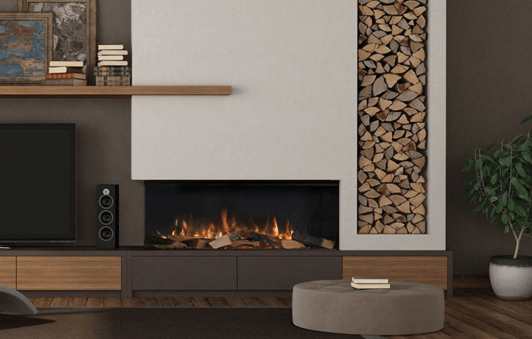 De eerste elektrische haard met 3 zijdig vlambeeld door realistisch geprojecteerd vlammen.
