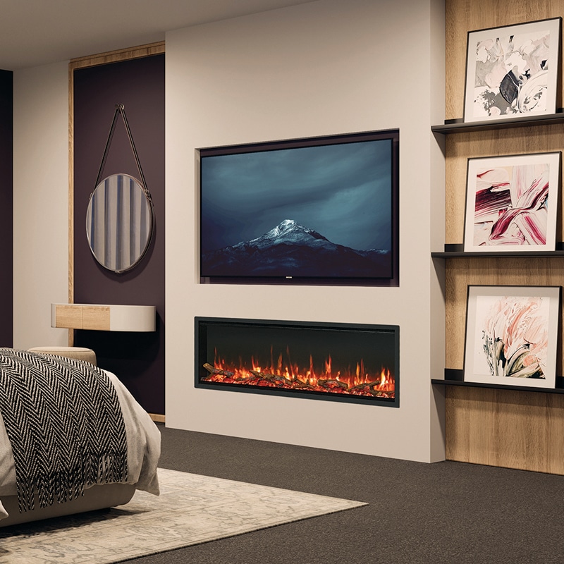 De FireFX Atmos 135R is een moderne en stijlvolle inbouw elektrische haard die perfect tot zijn recht komt als blikvanger in zowel middelgrote als grotere woonruimtes. Met zijn brede formaat van 135 cm en strakke, eenzijdige vuurweergave creëert deze haard een indrukwekkend panoramisch vlambeeld dat ideaal is voor cinewalls en eigentijdse interieurs. Dankzij het slanke ontwerp met een beperkte inbouwdiepte is de haard eenvoudig te integreren in diverse opstellingen, zonder dat er veel ruimte nodig is. De realistische houtset, geplaatst op een donkere glasbodem, wordt sfeervol verlicht met instelbare LED-verlichting voor een levendig en natuurgetrouw vuurbeeld. Je kunt kiezen uit verschillende vlamkleuren, helderheidsniveaus en meerdere kleuren voor het branderbed, waardoor je de sfeer volledig naar wens aanpast. Daarnaast is er een dynamische kleurmodus beschikbaar voor extra beleving. De vlammen en verlichting zijn onafhankelijk van de verwarming te gebruiken, zodat je het hele jaar door kunt genieten van de uitstraling van een haard. Voor extra comfort beschikt de haard over een ingebouwde thermostaat waarmee de temperatuur automatisch wordt geregeld. Slimme functies zoals raam-open-detectie en een programmeerbare weektimer zorgen voor efficiënt en energiezuinig gebruik. Met de meegeleverde afstandsbediening bedien je eenvoudig alle functies vanaf je zitplaats. De installatie is eenvoudig dankzij het plug-and-play systeem, waardoor de haard snel gebruiksklaar is. Het geïntegreerde frame zorgt voor een strakke afwerking en verbergt eventuele oneffenheden rondom de inbouw. Hierdoor is de FireFX Atmos 135R een uitstekende keuze voor wie op zoek is naar een luxe, gebruiksvriendelijke en veelzijdige elektrische haard met een krachtige en sfeervolle uitstraling.
