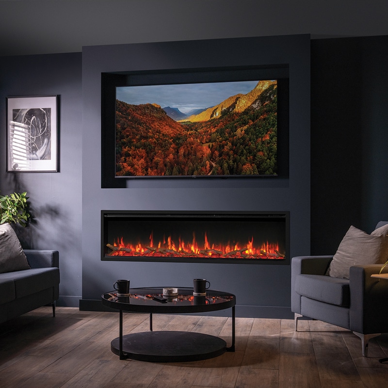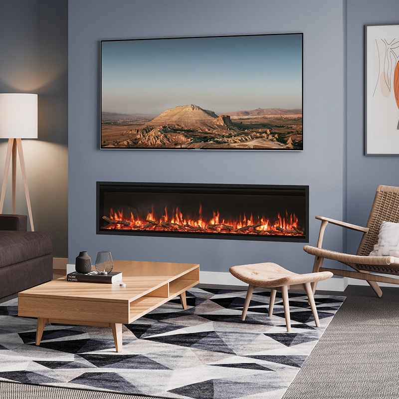 De FireFX Atmos 165R is een indrukwekkende en moderne inbouw elektrische haard die speciaal is ontworpen voor grotere woonruimtes en luxe cinewalls. Met een royale breedte van 165 cm en een panoramisch vlambeeld vormt deze haard een echte blikvanger in elke ruimte. Het strakke, eenzijdige design en de beperkte inbouwdiepte maken het mogelijk om de haard naadloos te integreren in een moderne wand of maatwerkopstelling. De realistische houtset op een donkere glasbodem, gecombineerd met sfeervolle LED-verlichting onder het branderbed, zorgt voor een bijzonder levendig en diep vuurbeeld. Je hebt de keuze uit diverse vlamkleuren, helderheidsniveaus en meerdere kleuren voor de verlichting van het branderbed, zodat je eenvoudig de gewenste sfeer creëert. Ook is er een dynamische kleurmodus beschikbaar voor een extra speels en luxe effect. De vlammen en verlichting zijn los van de verwarming te gebruiken, waardoor je het hele jaar door kunt genieten van de uitstraling van een haard. Voor optimaal comfort beschikt de haard over een ingebouwde thermostaat die automatisch de temperatuur regelt binnen een instelbaar bereik. Slimme functies zoals raam-open-detectie, een automatische uitschakeltimer en een programmeerbare weektimer zorgen voor efficiënt en energiezuinig gebruik. Met de meegeleverde afstandsbediening bedien je eenvoudig alle instellingen vanuit je stoel. De installatie is eenvoudig dankzij het plug-and-play systeem, waardoor de haard snel gebruiksklaar is. Het geïntegreerde frame zorgt voor een strakke afwerking en verbergt eventuele oneffenheden rondom de inbouw. Hierdoor is de FireFX Atmos 165R een ideale keuze voor wie op zoek is naar een grote, luxe en gebruiksvriendelijke elektrische haard met een krachtige en sfeervolle uitstraling.
