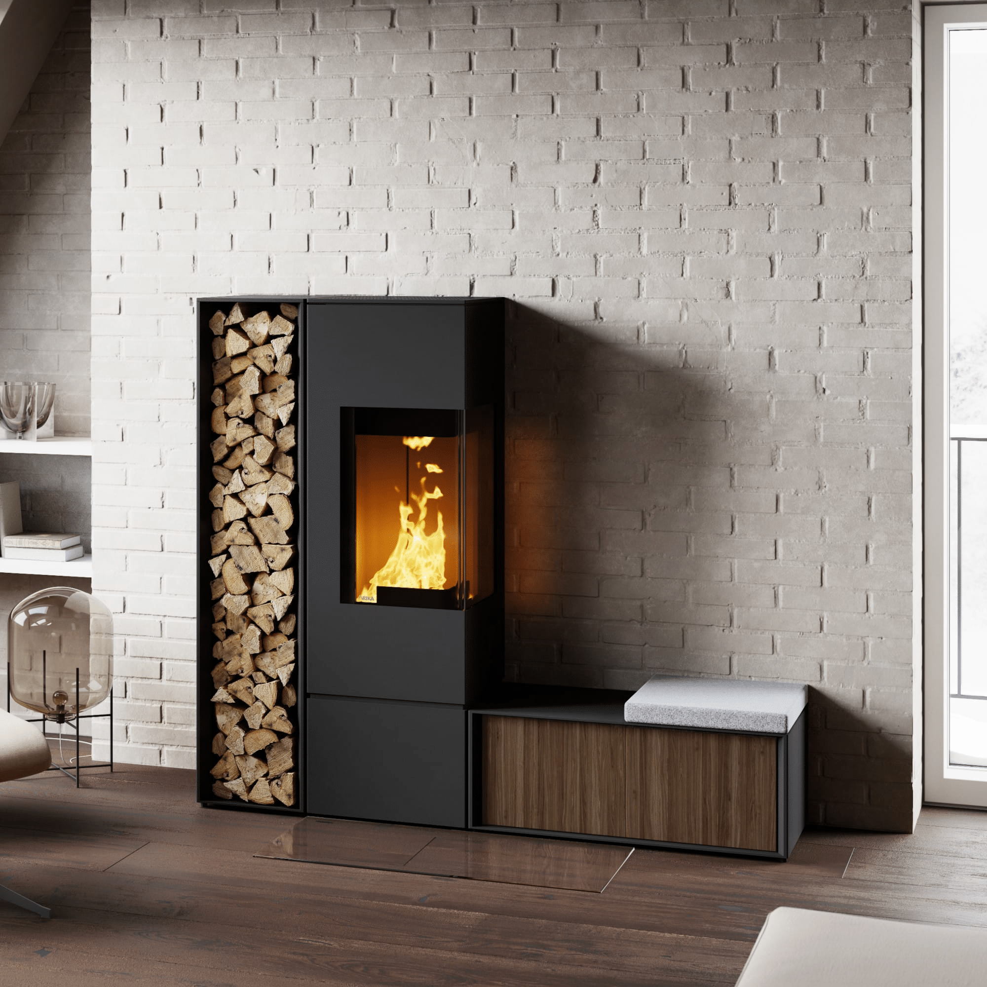 Het uiterlijk van de Rika Connect Wood is strak en hedendaags. De kachel heeft een rustige, rechte vormgeving met een groot glasvenster dat een indrukwekkend zicht biedt op het vlammenspel. Dit draagt bij aan de sfeer in de ruimte en maakt de kachel tot een visueel aantrekkelijk middelpunt. De afwerking is solid en kwalitatief hoogwaardig, waardoor de haard zich goed laat integreren in uiteenlopende interieurstijlen, van modern en minimalistisch tot warm en klassiek.