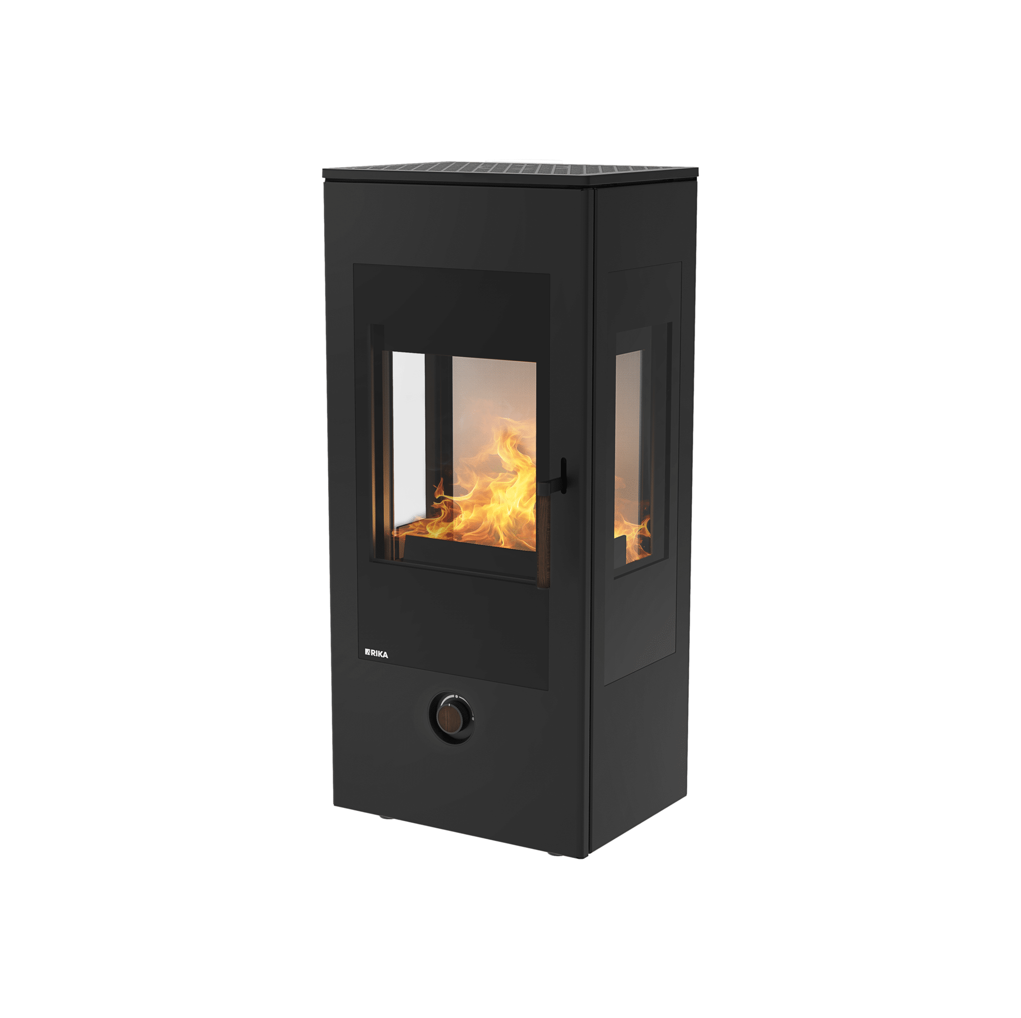 De Rika Trio is een moderne houtkachel die design en functionaliteit op hoog niveau combineert. Dit model van Rika onderscheidt zich vooral door zijn unieke driezijdige glasconstructie, waardoor het vuur vanuit meerdere hoeken zichtbaar is. Hierdoor ontstaat een panoramisch vuurbeeld dat de kachel tot een echte blikvanger maakt in elke woonruimte.