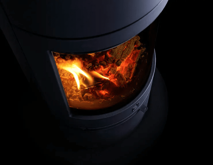 - Vrijstaande houtkachel met modern, rond design
