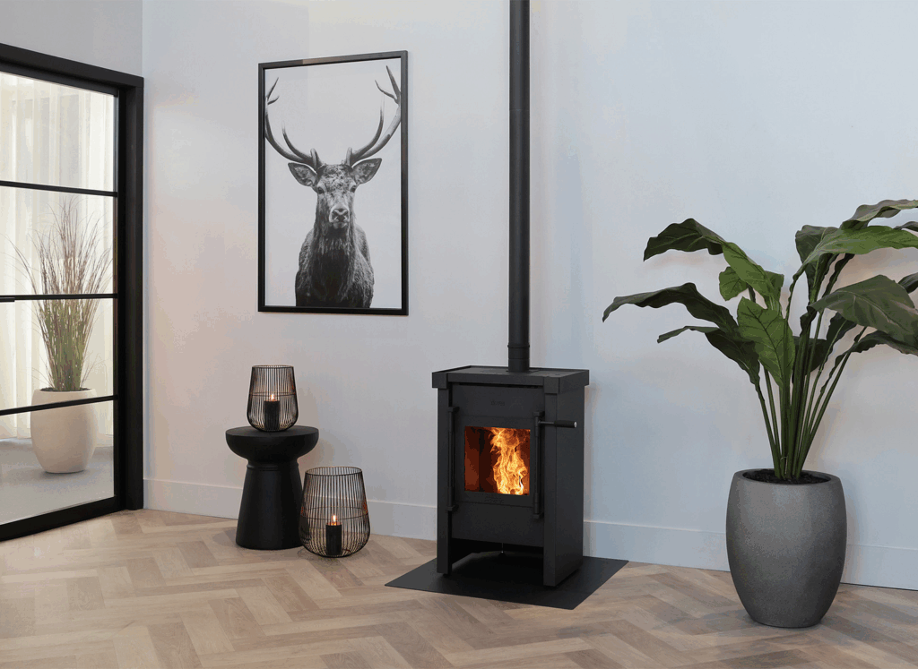 En met een aslade van 8 liter heeft u een lange tijd plezier van het stoken voordat de aslade vol zit.