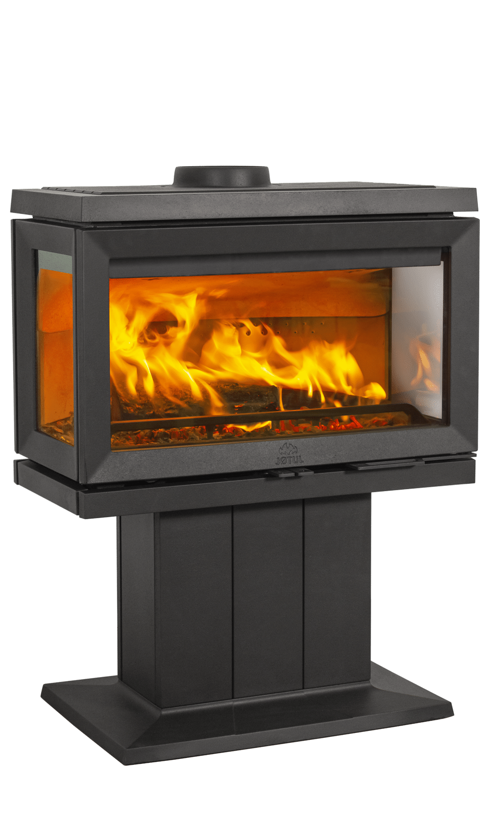 Gebruikersgemak komt terug in handige ontluchters waarmee het vuur eenvoudig te regelen is, en een blokhouder in de verbrandingskamer voor extra veiligheid. De deur werkt met snelsluiting voor soepele bediening, en in het voetstuk is ruimte voor het bewaren van houtblokken. De aansluitmogelijkheid is bovenaansluiting met Ø 150 mm, zoals gebruikelijk bij Jøtul, wat zorgt voor een nette installatie zonder veel visuele verstoring.
