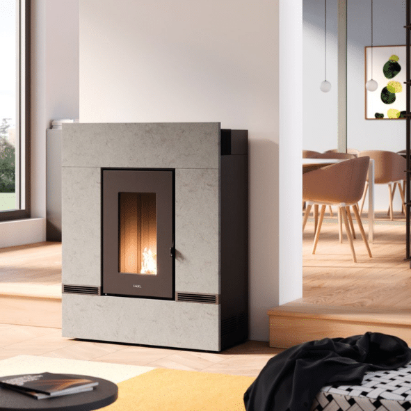 Een stille en comfortabele pelletkachel met een opvallend uiterlijk, de MCZ Lam Naturel. Door de optionele bijzondere afwerking van zijkanten met netstructuur uit staal, valt deze pelletkachel direct op. De trapezium vorm maakt het unieke ontwerp compleet. Ook deze kachel is uiterst stil en heeft de uitstraling en het vuurbeeld van een echte houtkachel. De kachel is leverbaar in verschillende uitvoeringen. Zijpanelen in zwart of wit. Daarnaast kan er gekozen worden voor speksteen of metaal netstructuur.
