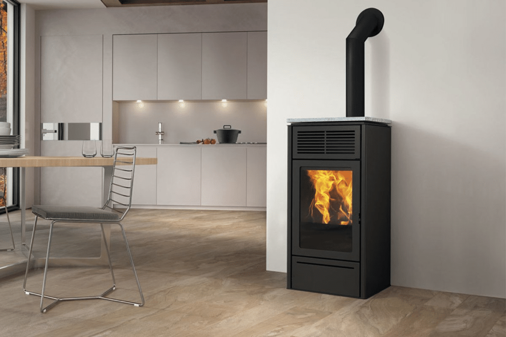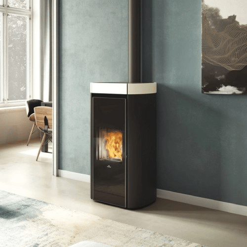 De Olivia pelletkachel is in diverse kleuren leverbaar, zoals zwart, rood en pergamena.